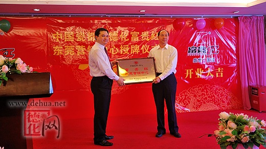 11月6日,“中國(guó)瓷都·德化富貴紅東莞營(yíng)銷中心”在東莞聯(lián)大紅木藝術(shù)中心正式授牌開(kāi)業(yè),這是富貴紅繼深圳世紀(jì)工藝、深圳機(jī)場(chǎng)成功開(kāi)業(yè)營(yíng)運(yùn)后,在廣東省的又一家營(yíng)銷中心,同時(shí)本月7日(明天),在廣州美林國(guó)際空間飾品中心的“中國(guó)·瓷都德化富貴紅廣州營(yíng)銷中心”也將授牌。