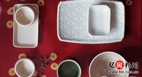 成組的中式的陶瓷餐具更符合現(xiàn)代人的使用習(xí)慣。散落的碎花點(diǎn)綴在紅色的漆盤(pán)中,東方韻味躍然于餐桌上。