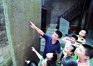 院內(nèi)碑文吸引小書法愛好者