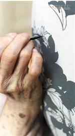 比如一個(gè)茶杯,要畫300到500個(gè),挑選很嚴(yán)格,一點(diǎn)毛病都不能有,花紋要用放大鏡去照,看有沒有裂紋和瑕疵。