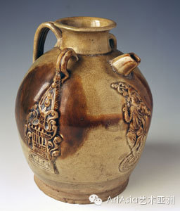 青釉模印貼花人物紋瓷壺