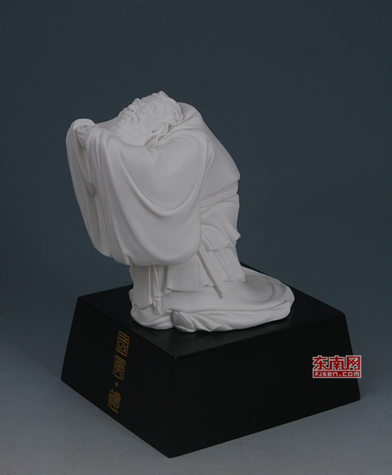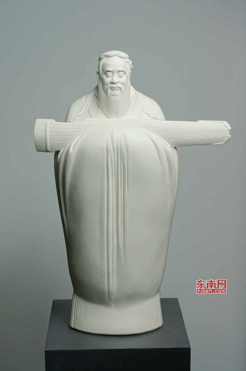 于是,評(píng)委們看到了一尊別具一格的孔子瓷塑:一身長衫的孔夫子仍然是拱手于前,但是長袖之上,拱托著一把古琴,將這位至圣先師傳禮樂于天下的迫切心愿,活脫脫地刻劃出來!