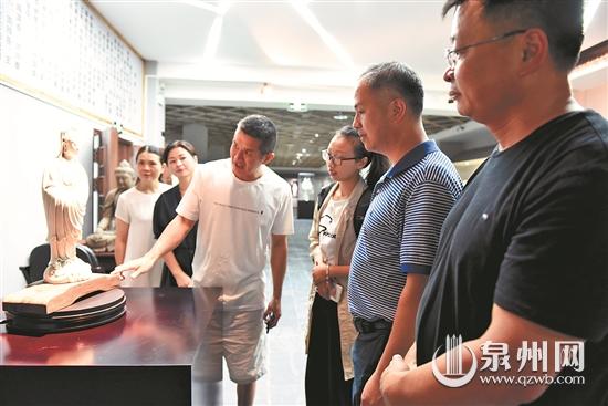在金煌陶瓷博物館,參觀者了解渡海觀音作品。
