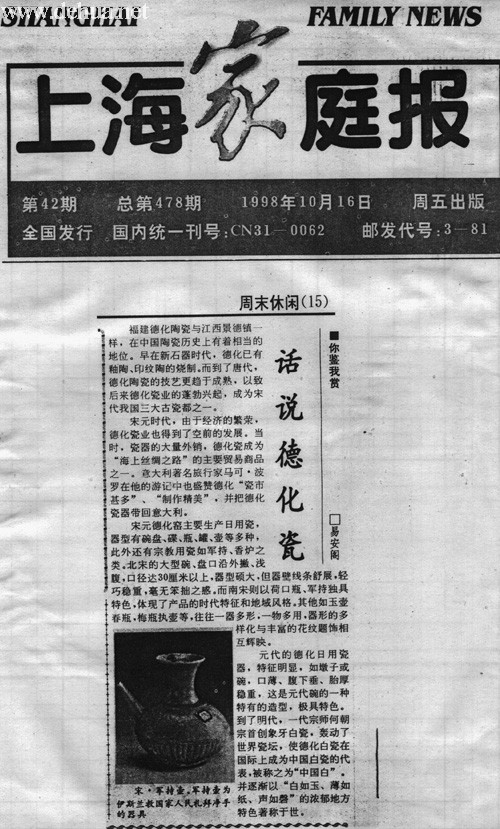 福建德化陶瓷與江西景德鎮(zhèn)一樣,在中國陶瓷歷史上有著相當(dāng)?shù)牡匚弧T缭谛率鲿r代,德化已有釉陶、印紋陶的燒制。而到了唐代,德化陶瓷的技藝更趨于成熟,以致后來德化瓷業(yè)的蓬勃興起,成為宋代我國三大古瓷都之一。