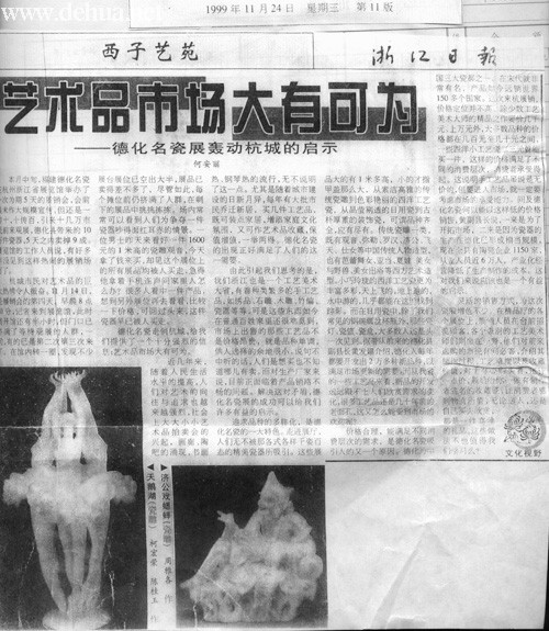 德化名瓷走俏杭城,給我們提供了一個十分強(qiáng)烈的信息:藝術(shù)品市場大有可為。