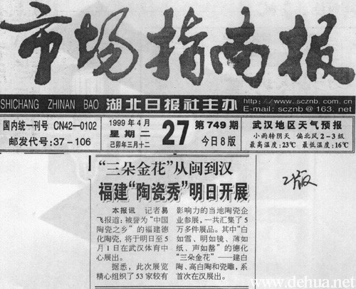 本報(bào)訊記者易飛報(bào)道:被譽(yù)為“中國(guó)陶瓷之鄉(xiāng)”的福建德化陶瓷,將于明日至5月1日在武漢體育中心展出。