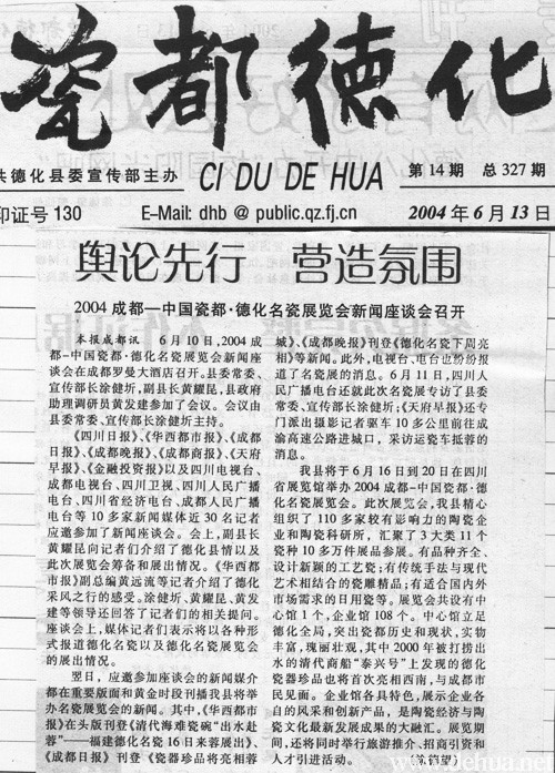 2004成都—中國(guó)瓷都·德化名瓷展覽會(huì)新聞座談會(huì)召開