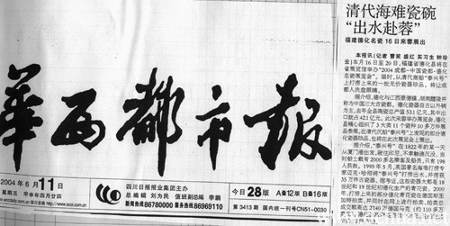 本報(bào)訊(記者 曹笑 盛紅 實(shí)習(xí)生 鐘珍云)本月16日至20日,福建省德化縣將在省展覽館舉辦“2004成都—中國(guó)瓷都·德化名瓷展覽會(huì)”。屆時(shí),從清代商船“泰興號(hào)上打撈上來(lái)的一批無(wú)價(jià)瓷器珍品,將讓成