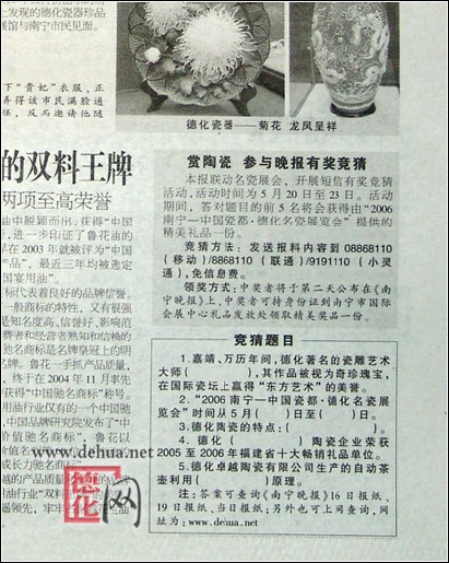 此外,報紙還舉行“賞陶瓷 參與晚報有獎競猜活動”如下圖: