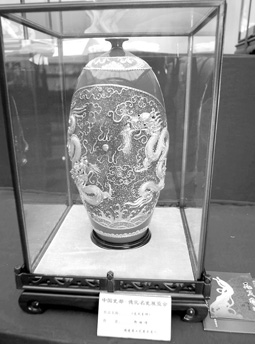 記者在現(xiàn)場看到:在一號展館的企業(yè)展區(qū)里,共有90多個企業(yè)展位。076號展位展出的是濟(jì)公系列瓷器作品,共有幾十件,看,這個狡黠多智的濟(jì)公,還會向人吐舌頭;051號展位的展主,正在向觀眾演示瓷器的高科技——可以自動出水的茶壺,把杯子放在壺嘴下,茶水就自動地流到杯子里,杯滿了,壺嘴又自動停水,讓人連連稱奇。而064號展位的國瓷苑展出的均是國家級禮品,雍容華貴,一件雕著金龍的高溫紅釉作品,含金量高達(dá)90%以上。