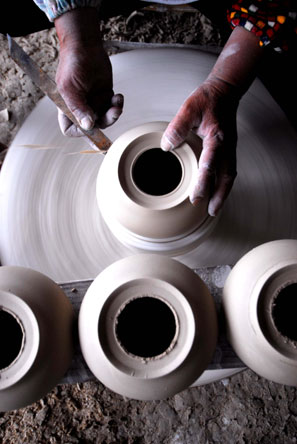 “匣缽,用來盛放瓷坯的,它至少得經(jīng)受1600℃的高溫。”老師傅始終沒有抬頭。