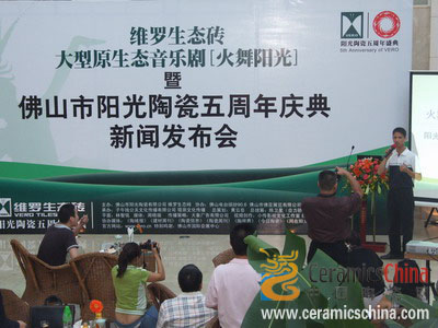 陽光陶瓷公司市場(chǎng)部黃云岳經(jīng)理在發(fā)布會(huì)上給媒體記者介紹了公司的整體情況,并預(yù)報(bào)了陽光公司將于9月6日舉行的大型音樂劇《火舞陽光》的具體細(xì)節(jié),引起全體媒體朋友的廣泛關(guān)注。