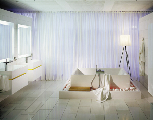 浴室在各個家居空間中,稱得上是人在其中能夠呈現最放松狀態(tài)的空間之一,因此在浴室設計方面,追求能夠令人松弛的效果也是即將到來的浴室主流風格之一。體現這種趨勢,除了浴室空間的色彩組合搭配,更重要的是各種潔具及配件能夠從不同的角度真正為人們帶來充滿人性化的、方便舒適的使用效果。