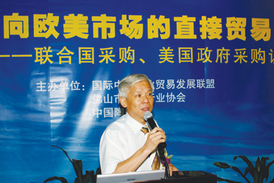 本報訊 (記者 許學(xué)鋒 陳偉冰)由國際中小企業(yè)貿(mào)易發(fā)展聯(lián)盟(ISMEUK)、 中國陶瓷城、佛山市陶瓷行業(yè)協(xié)會主辦的“創(chuàng)建面向歐美的直接貿(mào)易平臺”暨聯(lián)合國采購、美國政府采購說明會8月6日在佛山召開,為佛山陶瓷企業(yè)開拓國際市場介紹了一條便捷的通道。