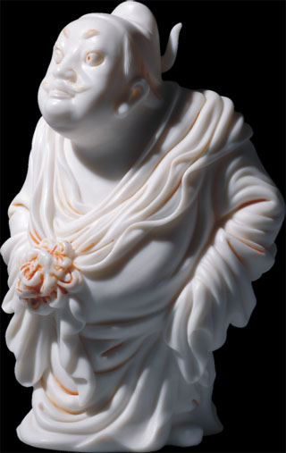 蘇珠莊,蘊玉瓷莊第四代傳人,高級工藝美術(shù)師,曾赴景德鎮(zhèn)陶瓷學院、清華大學工藝美術(shù)學院等高等學府深造、得國內(nèi)著名雕塑家教授言傳身教。承襲祖?zhèn)魉囷L,創(chuàng)作題材豐富,神形兼?zhèn)洌渥髌范啻潍@獎,并多次攜作品到國外展覽,深受好評。