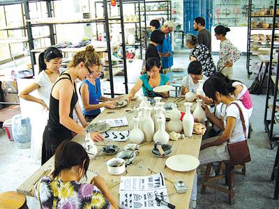 盛夏的景德鎮(zhèn),驕陽似火,但炎熱的天氣并不能阻擋國外陶藝愛好者學習景德鎮(zhèn)傳統(tǒng)技藝的熱情。7月20日下午,樂天陶社為來自國外的陶藝家們舉辦了一個學習和實踐景德鎮(zhèn)傳統(tǒng)青花技藝的工作營。有美國的MarieWeichmen、加拿大的Sin Ying Ho和Catherine Paleczny、印度的Pandrangiah Daroz、丹麥的Christin Johanson、英國的Lizzie Aylife和Malcolm Ross White、日本的豐浦愛等。這些學員,多數(shù)都是職業(yè)陶藝家,有的是國外藝術學院的教授,還有的是干開始從事陶藝的學員。無論是誰,他們無不希望通過這一課程加深對景德鎮(zhèn)的傳統(tǒng)陶瓷工藝的了解。