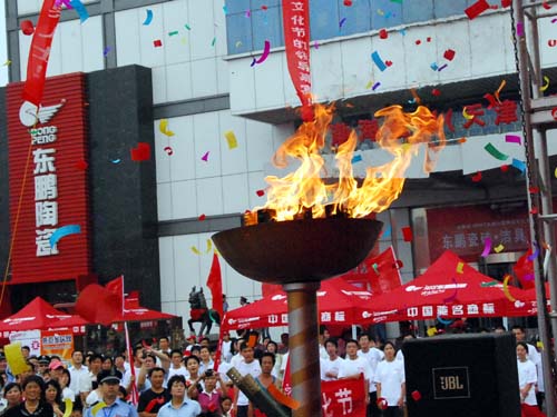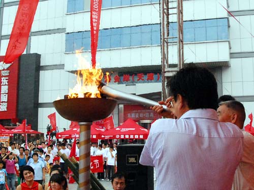 在北京奧運(yùn)進(jìn)入倒計(jì)時(shí)之際,此次陶瓷文化節(jié),舉辦方特意從廣東佛山的“南風(fēng)古灶”(一座500多年歷史的古窯,名為南風(fēng)古灶。500多年來一直在燒制陶瓷,至今仍在工作,國(guó)內(nèi)罕見)取來百年火種,進(jìn)行陶瓷界的“圣火傳遞”活動(dòng)。通過“圣火傳遞”活動(dòng),以弘揚(yáng)中國(guó)陶瓷淵源的歷史文化。