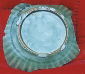 二、梅子青雕龍殘瓷佐證了宋元龍泉窯青瓷,器物除足脊刮釉露胎外,應(yīng)為滿釉———大凡盤、碗、罐、洗等,修削圈足時(shí)在圈足外斜削一刀,圈足大致內(nèi)斂;圈足內(nèi)墻直,大都修削過肩,足脊刮釉平整。是時(shí),龍泉窯使用瓷墊餅(有碟形餅、鏜羅餅)墊燒。