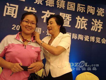 現(xiàn)場傳真一:部長“推銷”瓷項鏈