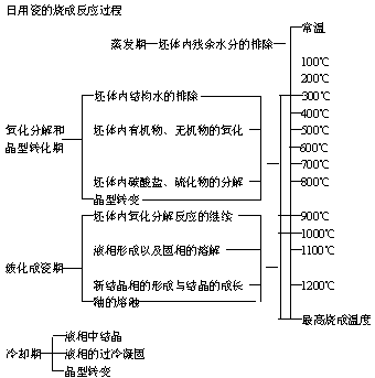 坯體的燒成是一個由量變到質變的過程。物理變化與化學變化交錯進行,變化復雜,一般可以將日用瓷的燒成過程分為四個階段,即: