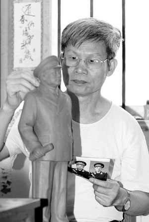 對(duì)于大家都在夸“‘賀龍’拿煙斗的姿勢特像”,霍家榮微笑地說,為了更深入地了解這兩位元帥,他專門借來兩本厚厚的元帥人物傳記,通過閱讀書籍,他了解到賀龍?jiān)獛洷容^喜歡用煙斗,因而就在“賀龍”的手上專門添加了一個(gè)煙斗。 “徐向前是山西人,解放戰(zhàn)爭時(shí)期的他與授勛時(shí)的外貌變化不是太大。眉毛、眼睛、鼻子、嘴唇以及臉形都是徐帥特明顯的地方。塑造好人物的主要面貌特征,這個(gè)創(chuàng)作能算是成功了一半。”霍家榮說。