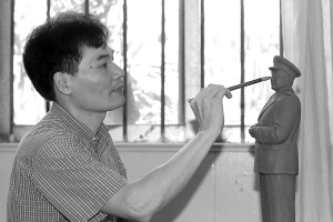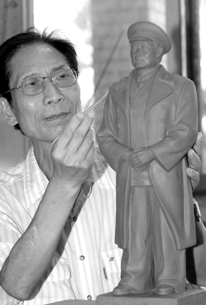 為此,劉炳曾到舊貨市場“淘”有關(guān)十大元帥的畫冊(cè),還專門跑到一家音像店買了一張反映十大元帥的新版電影光碟。但是,這張光碟主要反映元帥們的早期形象,這與他們此次創(chuàng)作所選的十大元帥受勛時(shí)的面貌有很大的不同。憑著有限的幾張照片,他進(jìn)行著艱難的創(chuàng)作。熟悉劉炳的人都知道,他的作品以刻畫細(xì)膩著稱。如果一件再好的作品他感覺有一點(diǎn)瑕疵,他都會(huì)較真起來,輕者重改,重則打爛重做。因此,他每年都要打爛許多自己不滿意的作品。這次創(chuàng)作也不例外。前段時(shí)間,他感覺“聶帥”面部特征不突出,便毫不猶豫地精心制作了另一個(gè)頭像,還專門做了一個(gè)“聶帥”頭像的石膏模。他說,塑像最關(guān)鍵的部分就是對(duì)面部的塑造,萬一這次修改我又不如意,我有可能打爛第二個(gè)頭像,然后用模子重新做一個(gè)新的進(jìn)行修改創(chuàng)作。