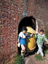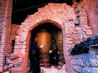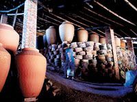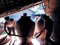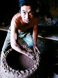 這么大的酒壇是由兩段土坯連接而成,正要入窯燒制。