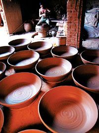當(dāng)?shù)厝司偷厝〔,挖泥制坯、掘地取煤,形成了前店后廠的陶器生產(chǎn)鏈。