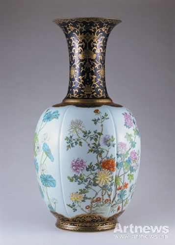 翰海今年春拍訂在6月23-25日,繼中國嘉德去年以5280萬人民幣拍出一件清乾隆〈粉彩開光八仙過海圖盤口粉彩瓶〉后,也非常難得的自海外征得一件清乾隆〈粉彩霽藍描金花卉大瓶〉高64.7公分。據(jù)悉,翰海相當(dāng)重視此件拍品,將是此場拍賣最重要的拍品之一,在5月下旬將會帶到香港預(yù)展展出外,還首次為這件稀有的粉彩大瓶高規(guī)格量身訂作單本精裝目錄;并邀請芝加哥費爾德博物館館長何翠媚及北京故宮專家以數(shù)篇中英文專文來詳盡介紹此瓶。北京故宮藏有一只清乾隆〈粉彩霽藍描金花卉詩文大瓶〉,與本次翰海粉彩大瓶尺寸相同,如出一轍。故宮是三面花卉,三面詩文帶印章款,而本件粉彩大瓶則是六面花卉,乾隆皇帝喜歡詩書畫一體的風(fēng)格,此件極有可能是其前身,尤其此瓶的體型碩大,腹部呈六瓣瓜棱形,工藝難度相當(dāng)高,粉彩花卉細(xì)膩,頗有畫琺瑯的風(fēng)格,實為乾隆早期難得一見的高檔清瓷。北京故宮清乾隆〈粉彩霽藍描金花卉詩文大瓶〉在2004年首度在芝加哥費爾德博物館The Field Museum,Chicago【中國紫禁城風(fēng)華:乾隆盛世Splendors of China"s Forbidden City:The Gloriose Reign of Emperor Qianlong】乾隆大展展出,展覽后在2006年,由中國各大博物館專業(yè)人員膺選為「中國瓷器史上最具代表性的歷代二十件名瓷之一」(此一引述取自芝加哥費爾德博物館館長何翠媚的專文中),其重要性可見一斑。