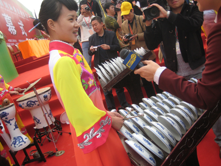 媒體爭相采訪瓷歐表演( 攝影:江宜航)