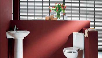 典型的鄉(xiāng)村休閑的衛(wèi)浴空間。仿古磨邊表面的墻磚、遍野薰衣草的泥土色澤,都呈現(xiàn)自然粗糙的紋理和顏色,自然但絕不簡(jiǎn)陋.