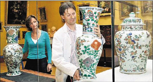 據(jù)報道,這3只17世紀的中國清代瓷瓶是英國劍橋菲茨威廉博物館的展品,已在該館展出了50多年,瓷瓶上描繪著牡丹、鳳凰、蝴蝶和昆蟲圖案,總價值50萬英鎊。2006年1月,42歲的英國藝術(shù)家尼克·弗林參觀該博物館時不慎摔了一跤,頓時將中國瓷瓶撞倒在地,摔成400多塊碎片。