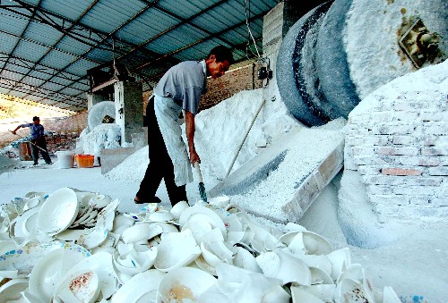 德化縣一陶瓷企業(yè)工人在對(duì)廢瓷品進(jìn)行碾磨回收再利用(11月15日攝)。 素有“瓷都”之稱的福建省德化縣現(xiàn)有各類陶瓷企業(yè)1000多家,陶瓷生產(chǎn)成了這個(gè)縣的支柱產(chǎn)業(yè),而由此帶來(lái)的環(huán)境污染和資源緊張等問題也成了制約當(dāng)?shù)亟?jīng)濟(jì)發(fā)展的絆腳石。近年來(lái),當(dāng)?shù)卣μ剿?ldquo;節(jié)能減排,資源再生,發(fā)展循環(huán)經(jīng)濟(jì)”的新路子,采取回收利用廢瓷品、廢泥料、廢水、窯爐余熱等措施,進(jìn)行資源的再生循環(huán)使用,有效地保護(hù)了資源和環(huán)境。新華社記者 張國(guó)俊 攝