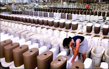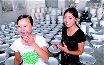 潮州新春天陶瓷公司員工對即將外銷的陶瓷衛(wèi)生潔具進行檢查。潮州是全國最大的衛(wèi)生潔具生產(chǎn)基地,產(chǎn)品的外銷量在國內(nèi)同行中名列前茅,效益相當可觀。