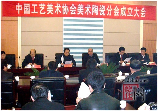 【德化網(wǎng) 訊】 11月18日,中國(guó)工藝美術(shù)協(xié)會(huì)美術(shù)陶瓷分會(huì)成立大會(huì)在河南省禹州市舉行。中國(guó)工藝美術(shù)協(xié)會(huì)執(zhí)行會(huì)長(zhǎng)、江西省人大副主任蔣仲平當(dāng)選為美術(shù)陶瓷分會(huì)會(huì)長(zhǎng),禹州市委書記周庚寅當(dāng)選為副會(huì)長(zhǎng)。德化縣陶藝界蘇清河、柯宏榮、張南章、蘇志勤、徐添福等五位當(dāng)選為理事,柯宏榮當(dāng)選為副會(huì)長(zhǎng)。
