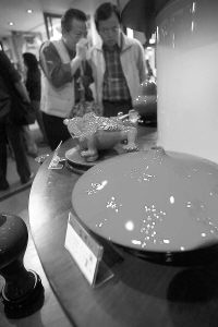 11月17日,市民們正在觀賞德化名瓷“富貴紅”瓷器。當天,富貴紅高溫紅釉藝術瓷在剛剛取得授牌的廈門市富貴紅營銷中心展出。