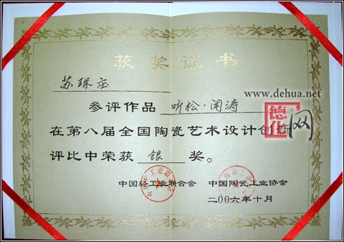 全國第八屆陶瓷藝術設計大獎賽銀獎《聽松·聞濤》