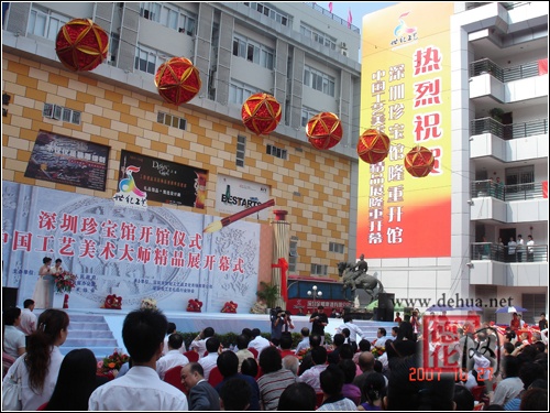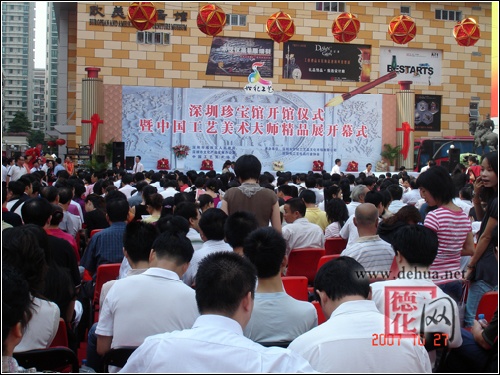 【德化網(wǎng) 訊】精美絕倫的刺繡珍品、巧奪天工的名窯陶瓷德化富貴紅,深圳市首個(gè)國(guó)家級(jí)的工藝品展示交易平臺(tái)——深圳珍寶館在福田區(qū)世紀(jì)工藝品文化廣場(chǎng)開(kāi)館,中國(guó)工藝美術(shù)大師精品展也同時(shí)揭幕。市委常委、副市長(zhǎng)呂銳鋒等出席了開(kāi)館儀式。
