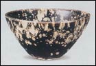 黑釉瓷類 黑釉瓷是吉州窯開放"異彩的山花",又稱之為"天目瓷"。它利用廉價的天然黑色涂料,通過獨特的制作技巧,產(chǎn)生變化多端的釉面與紋樣,達到清新雅致的效果,表現(xiàn)出民間的"實用藝術(shù)和樸素風格"。常見器物有碗、盤、碟、缽、瓶、壺、杯、高足杯、鼎爐、罐、器蓋和玩具等。胎質(zhì)夾細砂。