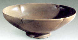 在東晉晚期出現(xiàn)的蓮瓣紋,在南朝時成為越窯青瓷的主要紋飾。器物上裝飾有小而密集的褐彩。器物以日用品為主,胎、釉分為兩種。一種胎質(zhì)致密,胎呈灰色,施青釉。另一種胎質(zhì)粗松,呈土黃色,外施青黃釉或黃釉。