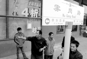 “霧崗路”上的陶瓷路牌。(本報(bào)記者鄧活生攝)