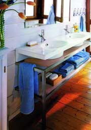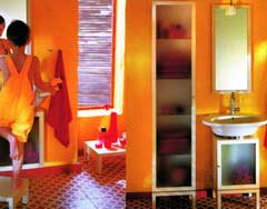 翻翻家居雜志,今年衛(wèi)浴的變化最明顯就是體現(xiàn)在墻面上,具有感情色彩的暖色調(diào)的防水墻漆、雍容淡雅的防水壁紙,還有那些天然的原木色板材,正逐漸使浴室呈現(xiàn)出迥然不同的風(fēng)情。其實(shí),要想達(dá)到這樣的裝飾效果并不難,只要認(rèn)識(shí)一些新材料就可以輕松操作了。