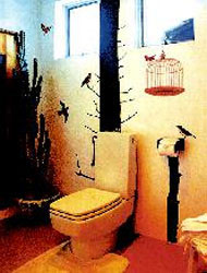 小衛(wèi)生間也是我們發(fā)揮創(chuàng)造力的空間,而且面積小,更容易產(chǎn)生立竿見影的效果。彩色瓷磚的拼貼、多彩涂料的墻繪,會使小小的衛(wèi)生間變得多姿多彩,充滿新奇的情調(diào),這些都是簡單易行的方法。如果你的衛(wèi)生間與浴室可以分隔開,那么大膽發(fā)揮的余地就更大了,平日深藏在盒子、柜子中的卡片和好玩的小東西完全可以掛在衛(wèi)生間里,多了被欣賞、把玩的機(jī)會。