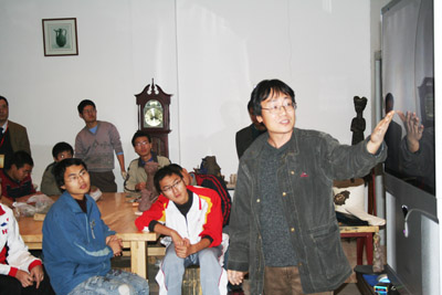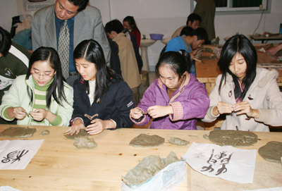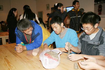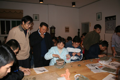 11月22日晚7點(diǎn),位于中國科技大學(xué)東區(qū)田徑運(yùn)動場北面的陶瓷藝術(shù)中心燈火通明。92平方米的大教室里,5張大原木制工作臺整齊地擺放著,70名本科學(xué)生正神情專注地聆聽著人文學(xué)院王祥老師的《陶瓷藝術(shù)鑒賞與制作》課。教育部評估專家組成員在我校副校長竇賢康教授的陪同下興致勃勃地現(xiàn)場觀摩了《陶瓷藝術(shù)鑒賞與制作》課程。