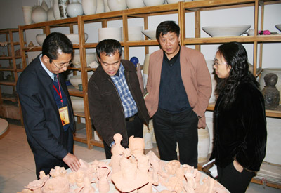 前來現(xiàn)場觀摩的教育部評估專家組成員認(rèn)真聽取了陶瓷藝術(shù)中心負(fù)責(zé)人的情況介紹,饒有興趣地參觀了陳列室、吹釉室和窯爐室,并和師生進(jìn)行了交流。專家組成員對我校堅(jiān)持在理工科大學(xué)開展陶藝等人文素質(zhì)課程教學(xué)表示了充分的肯定,并給予了高度的評價。教育部評估專家組組長、南開大學(xué)校長侯自新教授還欣然在陶板上題詞留念。