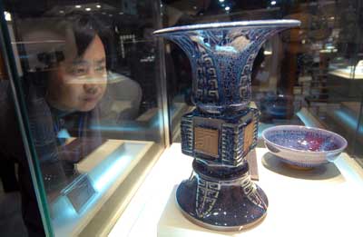 參觀者在觀賞陶瓷作品——“師德尊”。1月8日至14日,“陶瓷技藝學(xué)術(shù)交流匯報展”在北京天雅古玩城舉行,來自浙江龍泉、江西景德鎮(zhèn)等地的精品陶瓷薈萃京城。新華社發(fā)