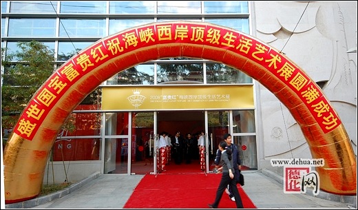 本次展會(huì)由世界奢侈品協(xié)會(huì)中國(guó)代表處主辦,福建省富貴紅文化發(fā)展有限公司冠名。德化縣副縣長(zhǎng)黃耀昆、富貴紅文化發(fā)展有限公司藝術(shù)總監(jiān)徐少東等出席開(kāi)幕式并致辭。展會(huì)邀請(qǐng)閩南金三角及海峽西岸各界財(cái)富人士、名流雅士及各知名媒體到場(chǎng),在當(dāng)天晚上還舉辦慈善之夜名流酒會(huì),同時(shí)在酒會(huì)現(xiàn)場(chǎng)進(jìn)行慈善拍賣(mài)活動(dòng),現(xiàn)場(chǎng)拍賣(mài)部分參展品,所得善款全數(shù)捐給慈善機(jī)構(gòu)。