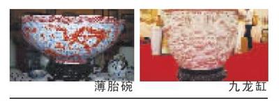 這些展品中,有一件《白玉深浮雕九龍?zhí)卮蟾住,是千件陶瓷中最昂貴的精品。此缸仿清宮珍藏,缸口直徑88厘米,重量150公斤,是工藝美術(shù)師歷時(shí)半年才精雕細(xì)刻而成。