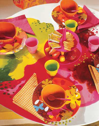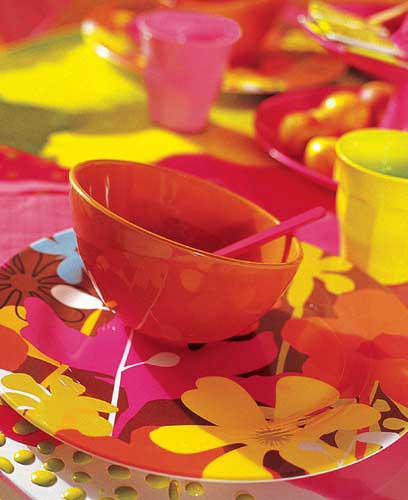 色餐具很容易買到,不過在挑選的時候,不妨仔細找一找那些造型特別的產品。例如圖片上碗口傾斜的小碗和兩層的粉色食物架,為節(jié)日里放松的生活多增添一分樂趣。
