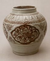 說 明: 釉里紅色調(diào)深沉暗紅,線條邊緣釉暈散的淡紅色。制作端莊,紋飾秀美。